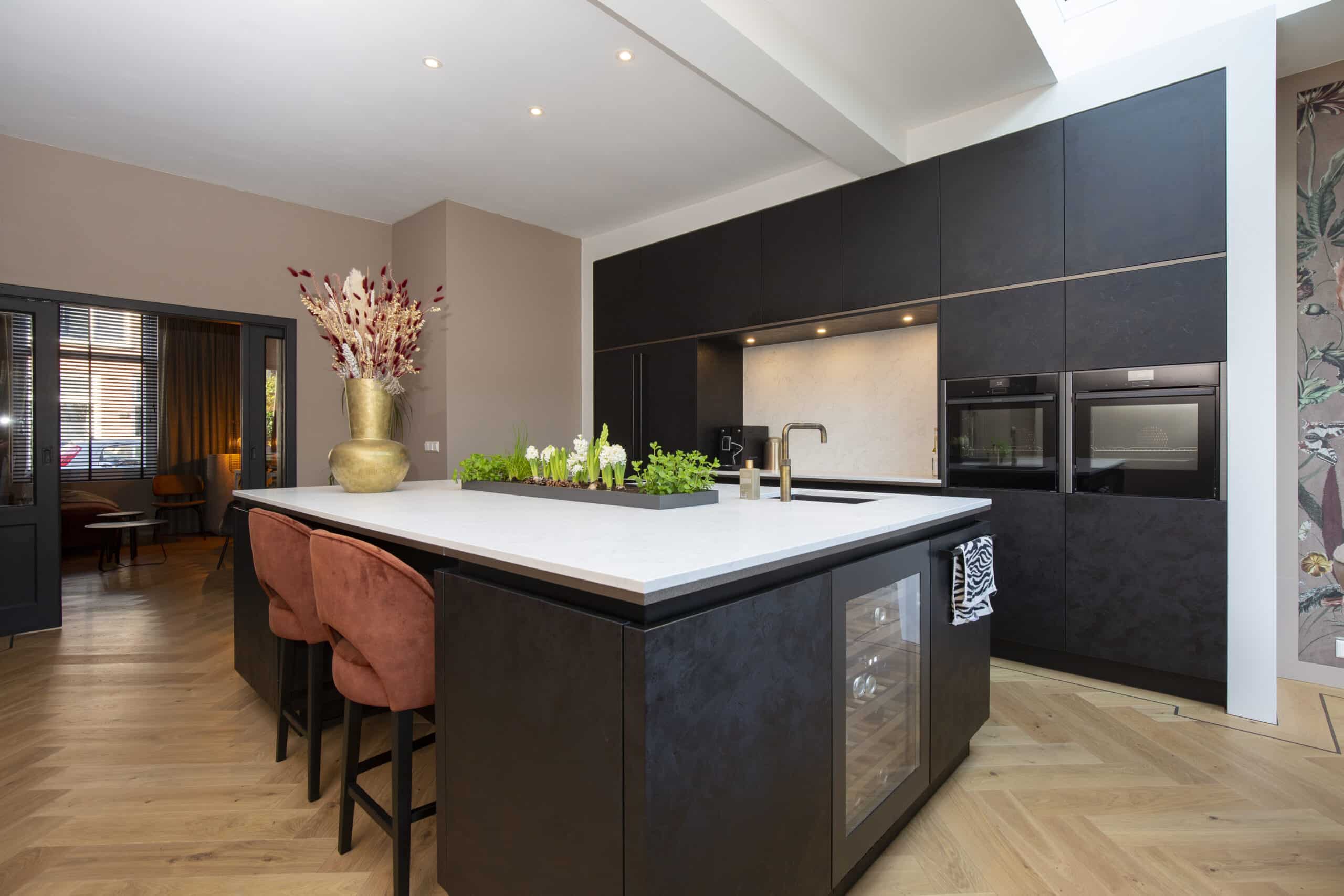 Onze composiet werkbladen zijn altijd minimaal 13 millimeter dik, zodat we een kwaliteitsniveau kunnen garanderen dat bij Velthuizen past. Wat prijs betreft is composiet vergelijkbaar met graniet. Een goedkoper alternatief zijn kunststof werkbladen.