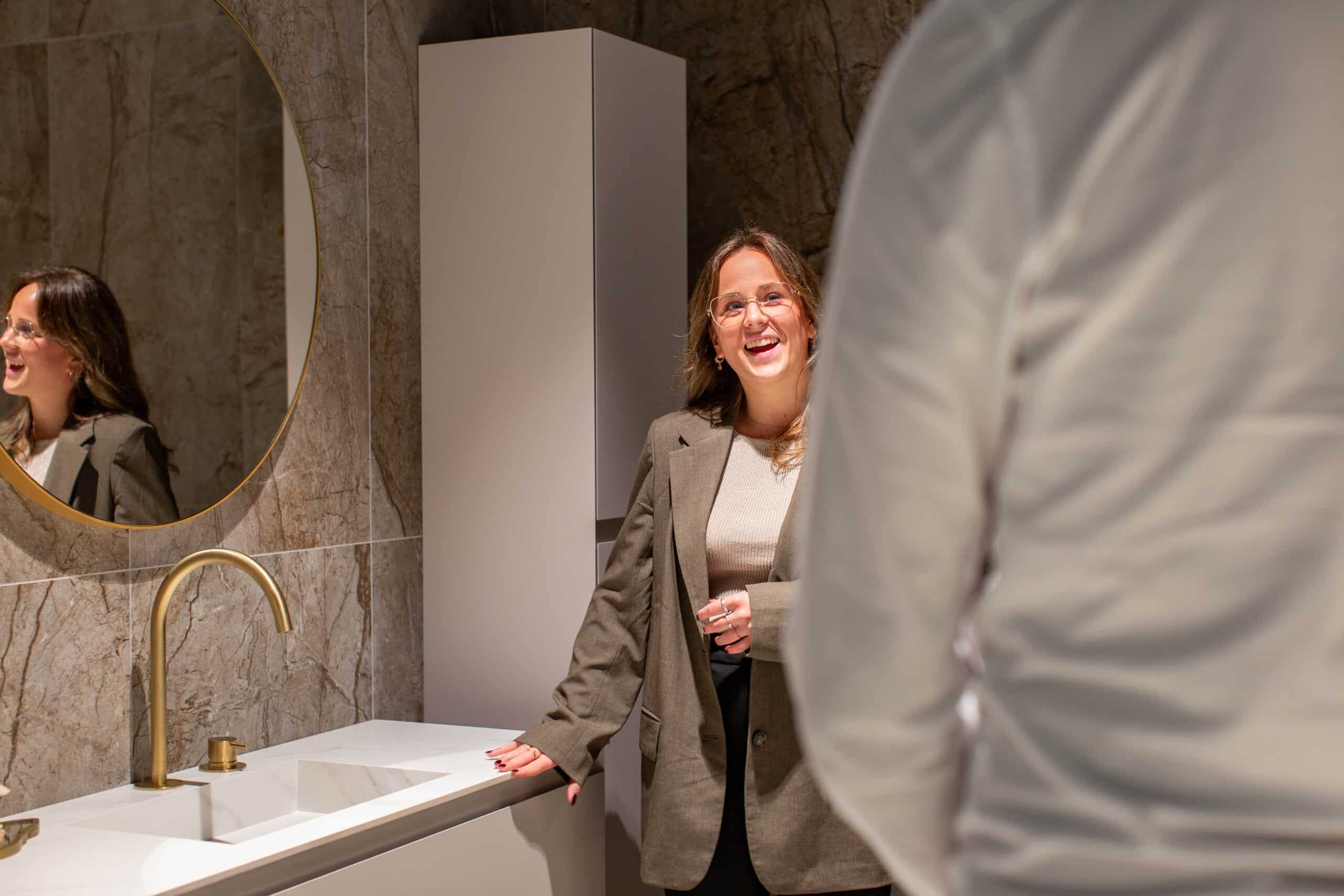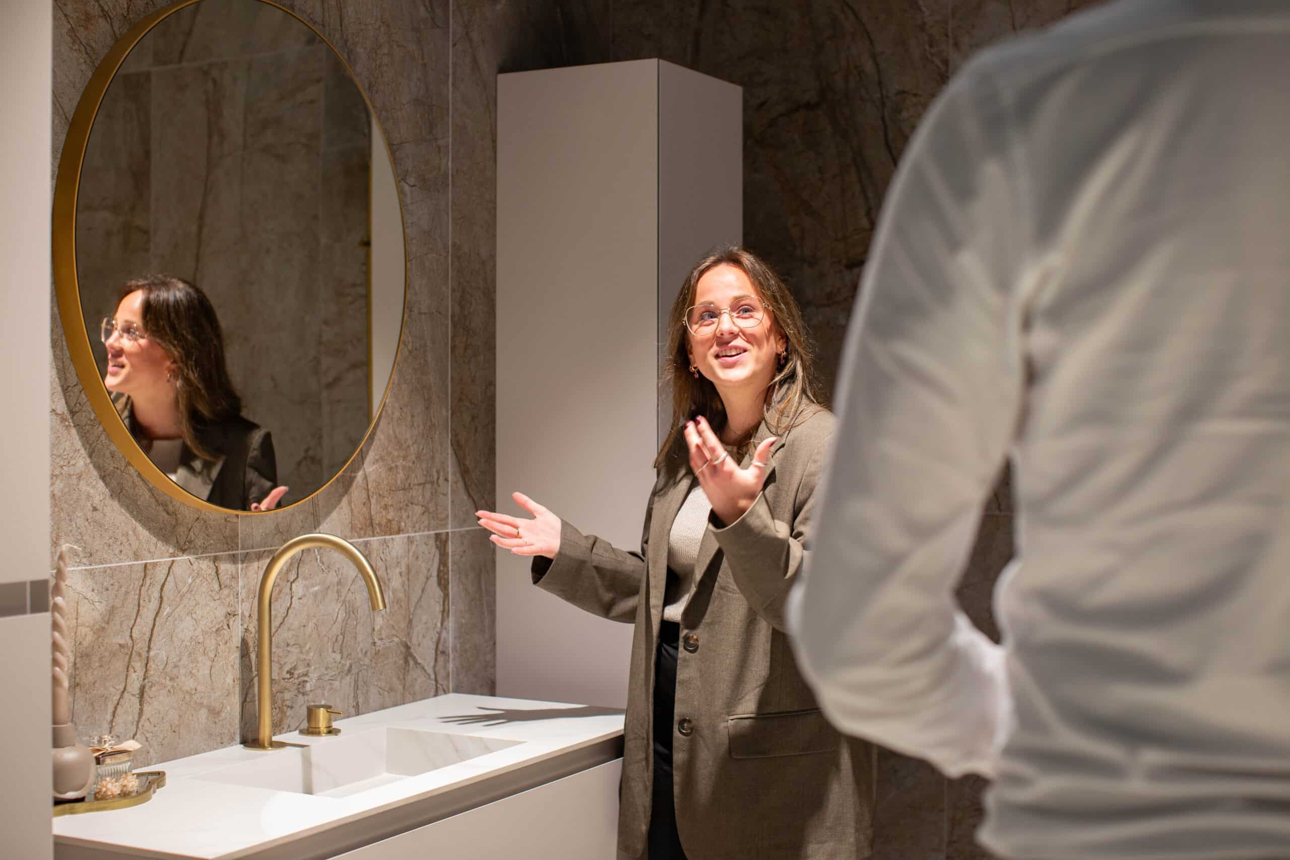 “Het leek me vroeger al leuk om badkamers te verkopen. Ik kon nooit precies uitleggen waarom, maar het idee om mensen te helpen met het uitkiezen van een ruimte die ze elke dag gebruiken, sprak me altijd aan. En nu mag ik dat gewoon doen! Het voelt heel natuurlijk en ik heb er ontzettend veel plezier in.