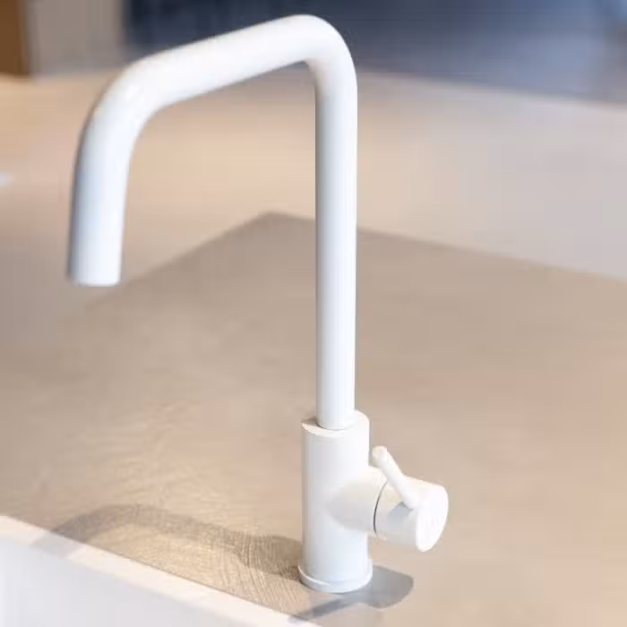Een stuk minder populair is de witte keukenkraan. Daarmee is het een uitgesproken keuze, al zie je dat niet vaak terugkomen in de keuken. Witte keukenkranen worden namelijk in de meeste gevallen toegepast in witte keukens, voor een minimalistisch effect. In tegenstelling tot zwarte kranen wordt de witte keukenkraan vaak niet contrasterend gebruikt.