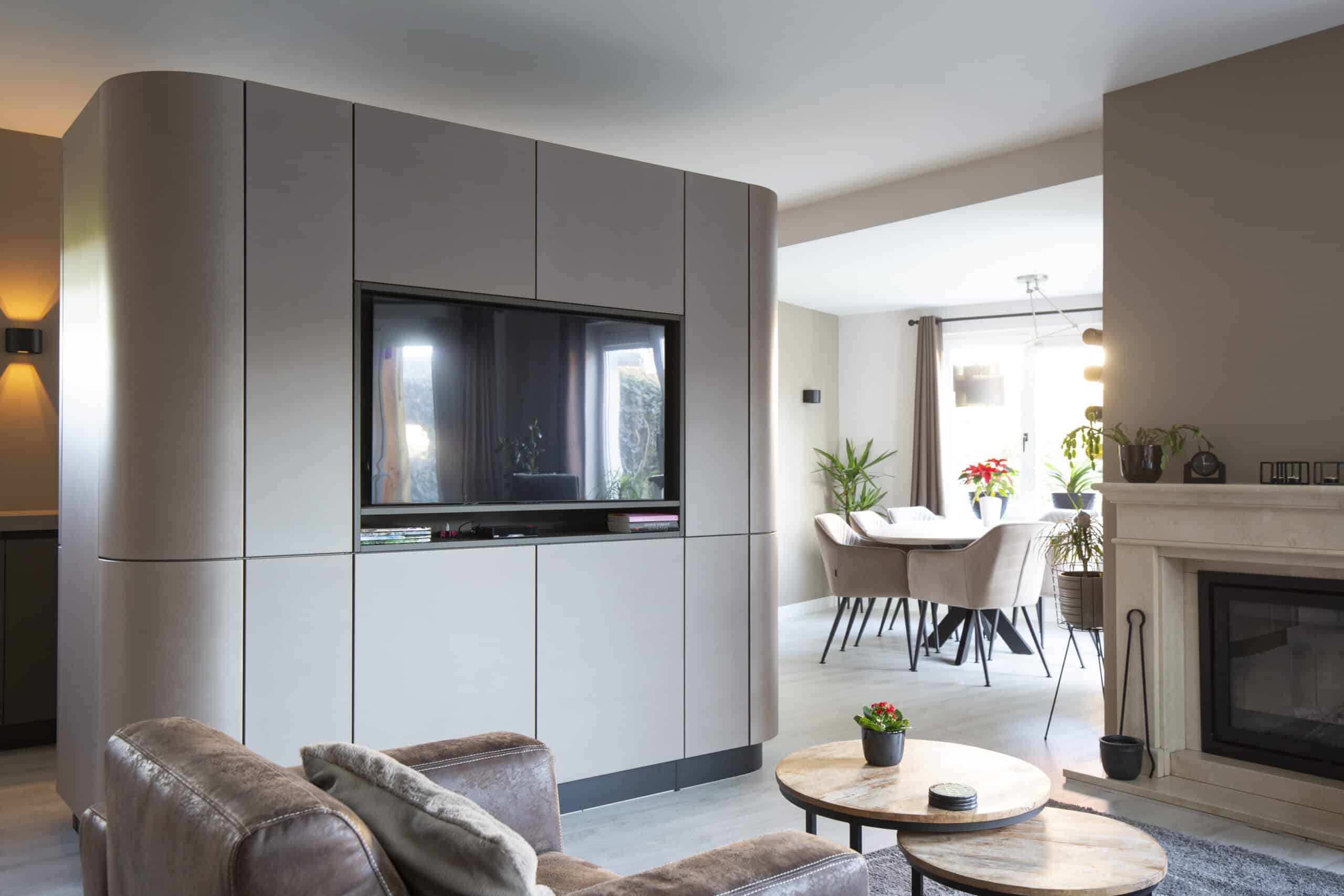 Benieuwd hoe dit eruit kan zien? Hieronder vind je de multifunctionele kast (zowel keukenkast, als TV-meubel) van familie Van Dijke. Deze kast is precies tussen de keuken en de woonkamer geplaatst, wat zorgt voor de perfecte ruimteverdeling.