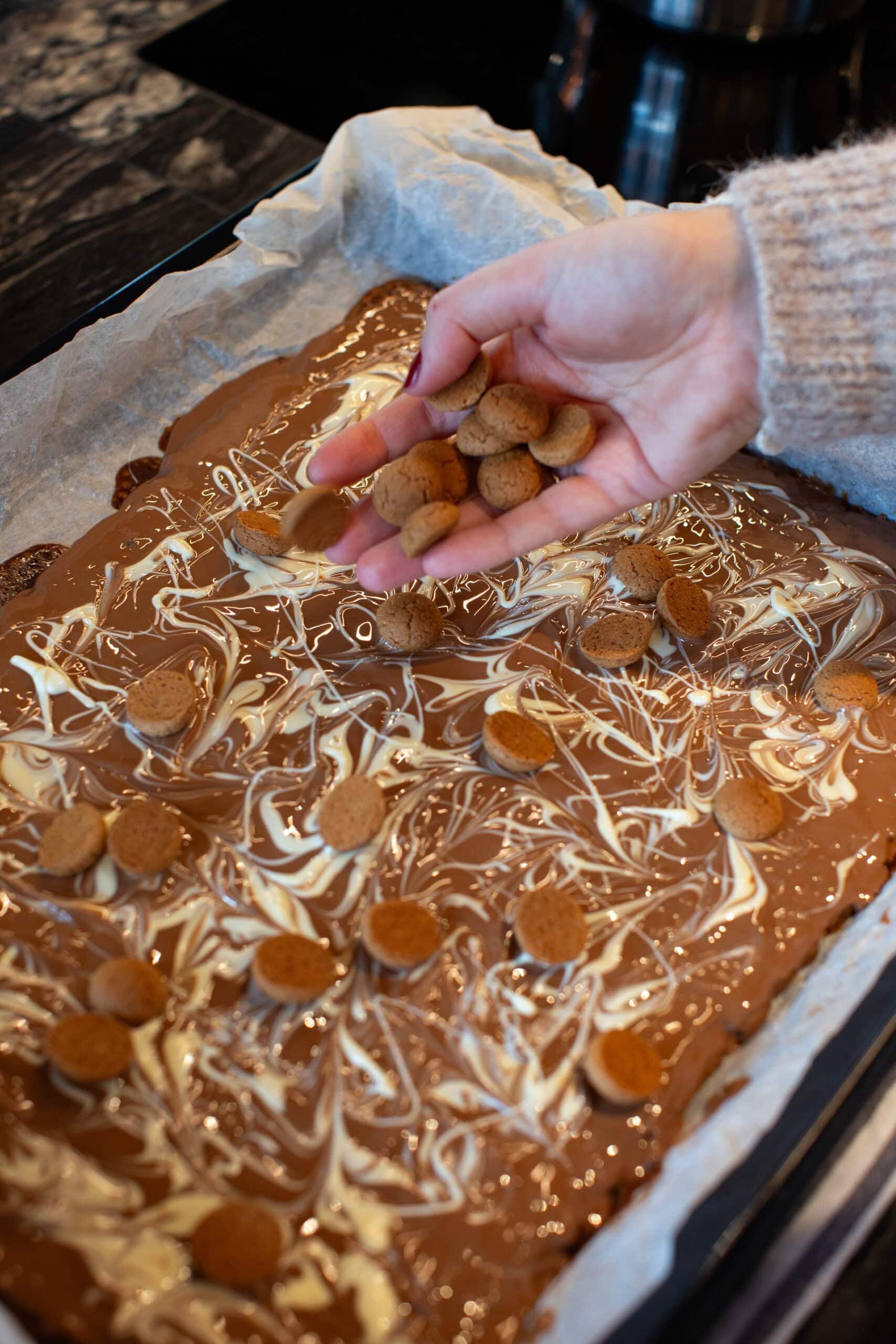 “Ideaal voor pakjesavond; één bakplaat is genoeg voor een hele groep, breek in grove stukken en uitdelen maar!”