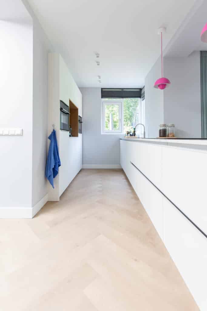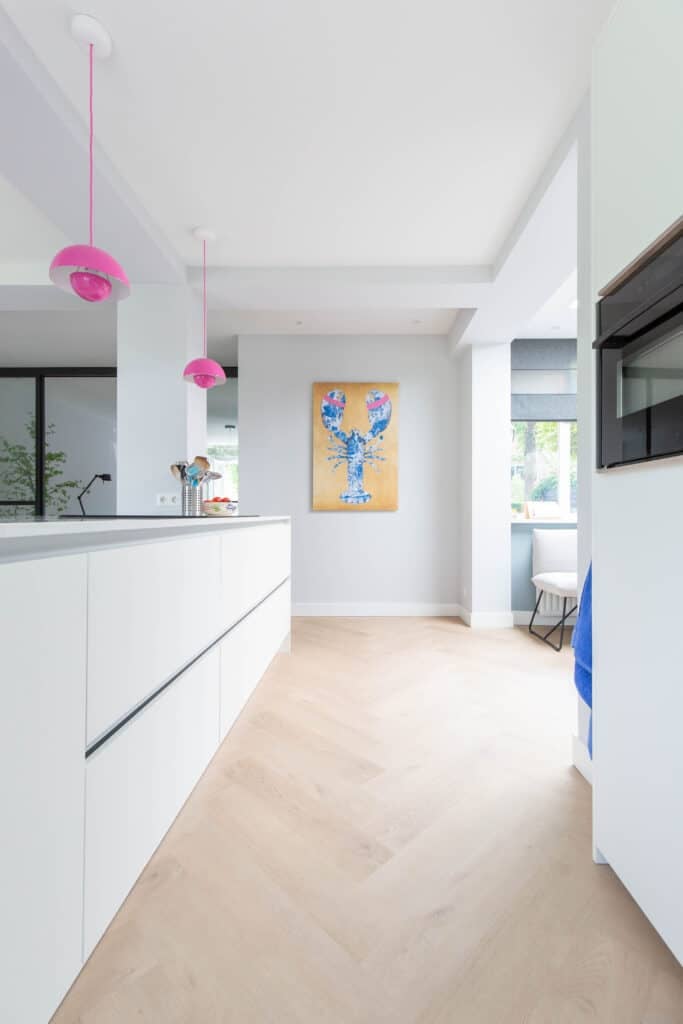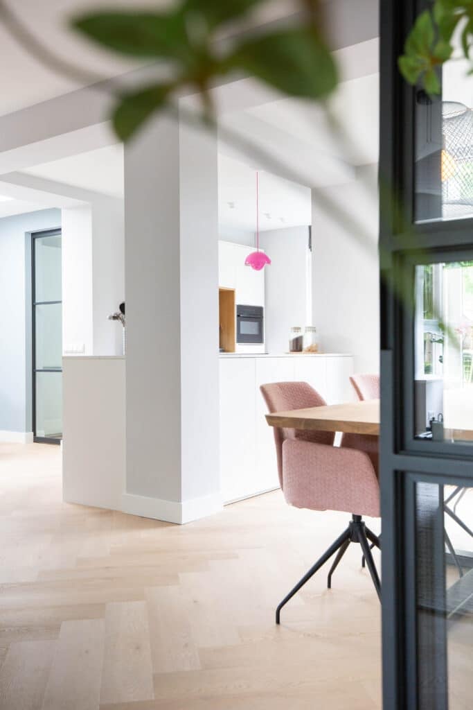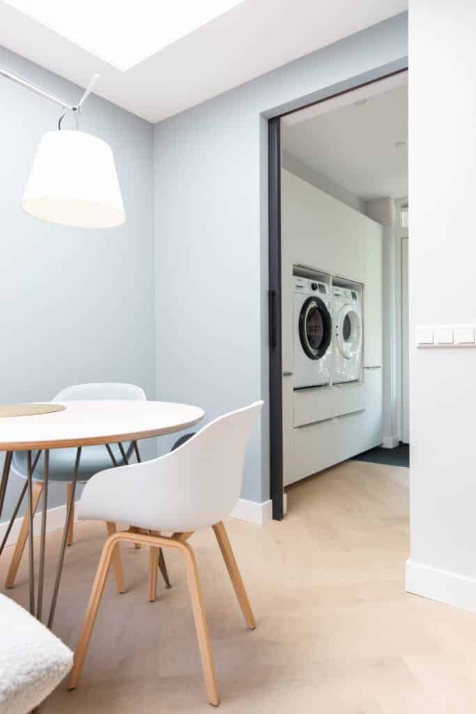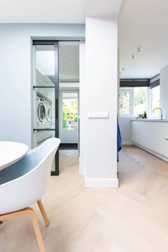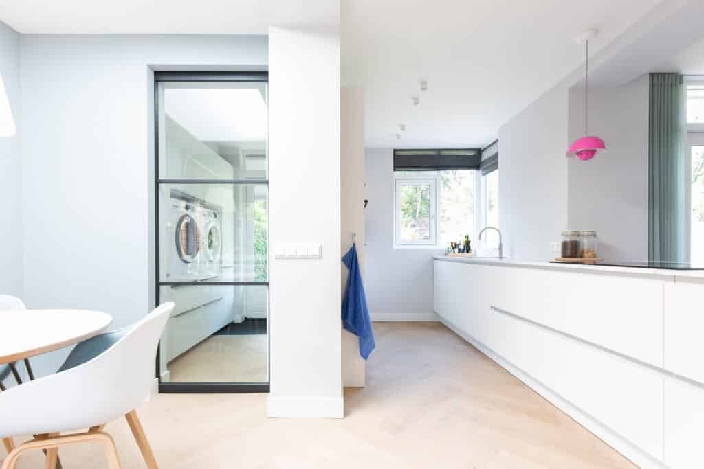 De wens van Joost en Tessel was een lichte en open ruimte met de keuken als centraal middelpunt. Het doorbreken van de muur en verplaatsen van een deur, was nodig om dit resultaat te kunnen bereiken. Dit betekende de start van een grondige verbouwing welke wij ook mochten uitvoeren. Daarbij is ook de slimme wasruimte, direct grenzend aan de keuken, meegenomen. Niets doet meer herinneren aan de oude situatie. Een heerlijke, frisse ruimte die helemaal klaar is voor de toekomst.