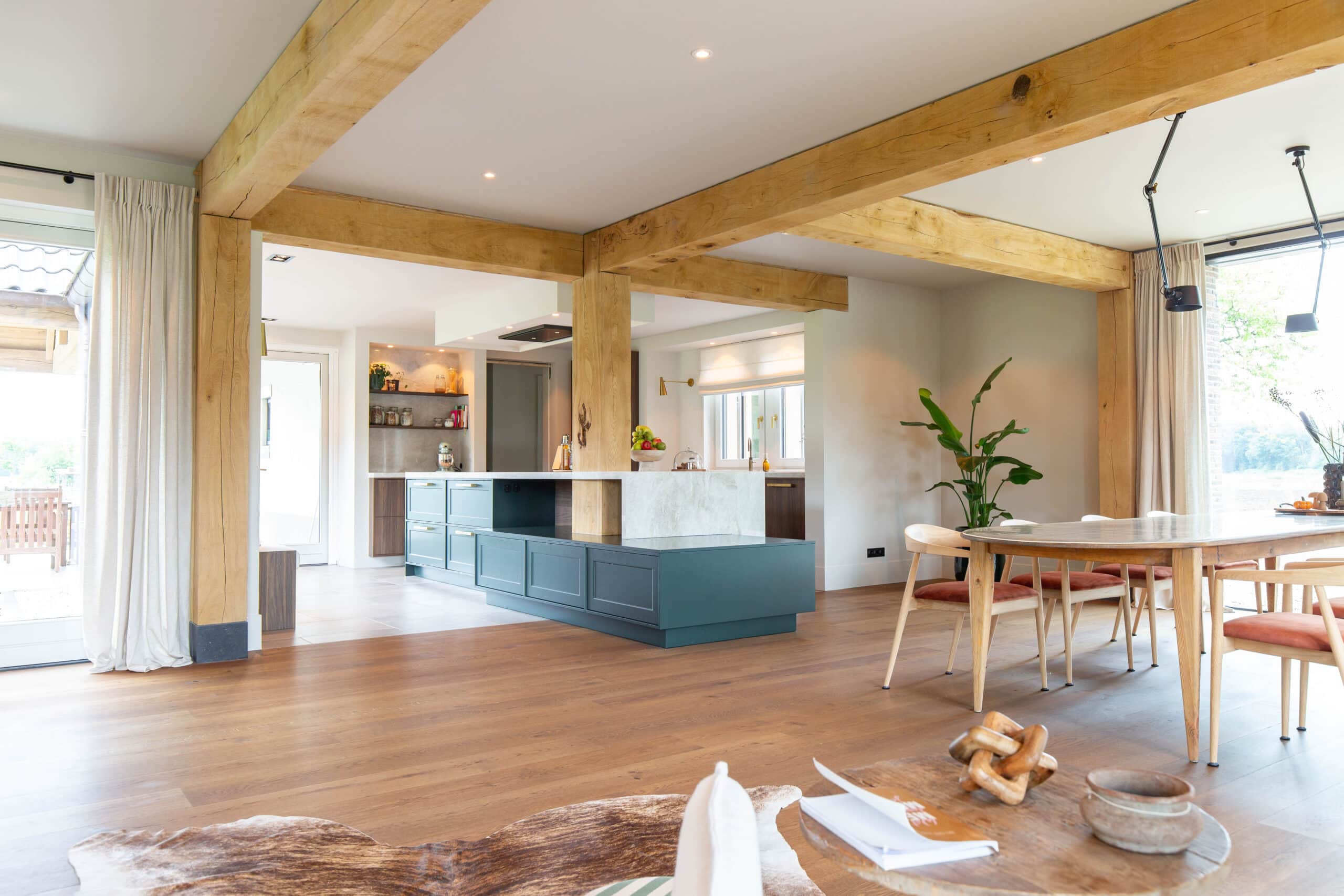 Twee jaar geleden stond er een groot project bij Richard en Paula voor de deur: de bouw van hun droomwoning. En daarbij komt uiteraard ook een nieuwe keuken kijken. “De keuken moest het hart worden van onze woning, dus dat was het allereerste waar wij mee aan de slag gingen”, begint Paula te vertellen. “Via de ondernemersclub kende mijn man Richard Velthuizen Keukens en Badkamers, en na een belletje stonden we al snel bij jullie in de showroom.” De wens was een ‘gezellige leefkeuken’; niet te strak, absoluut niet standaard en die uitnodigt om te koken.