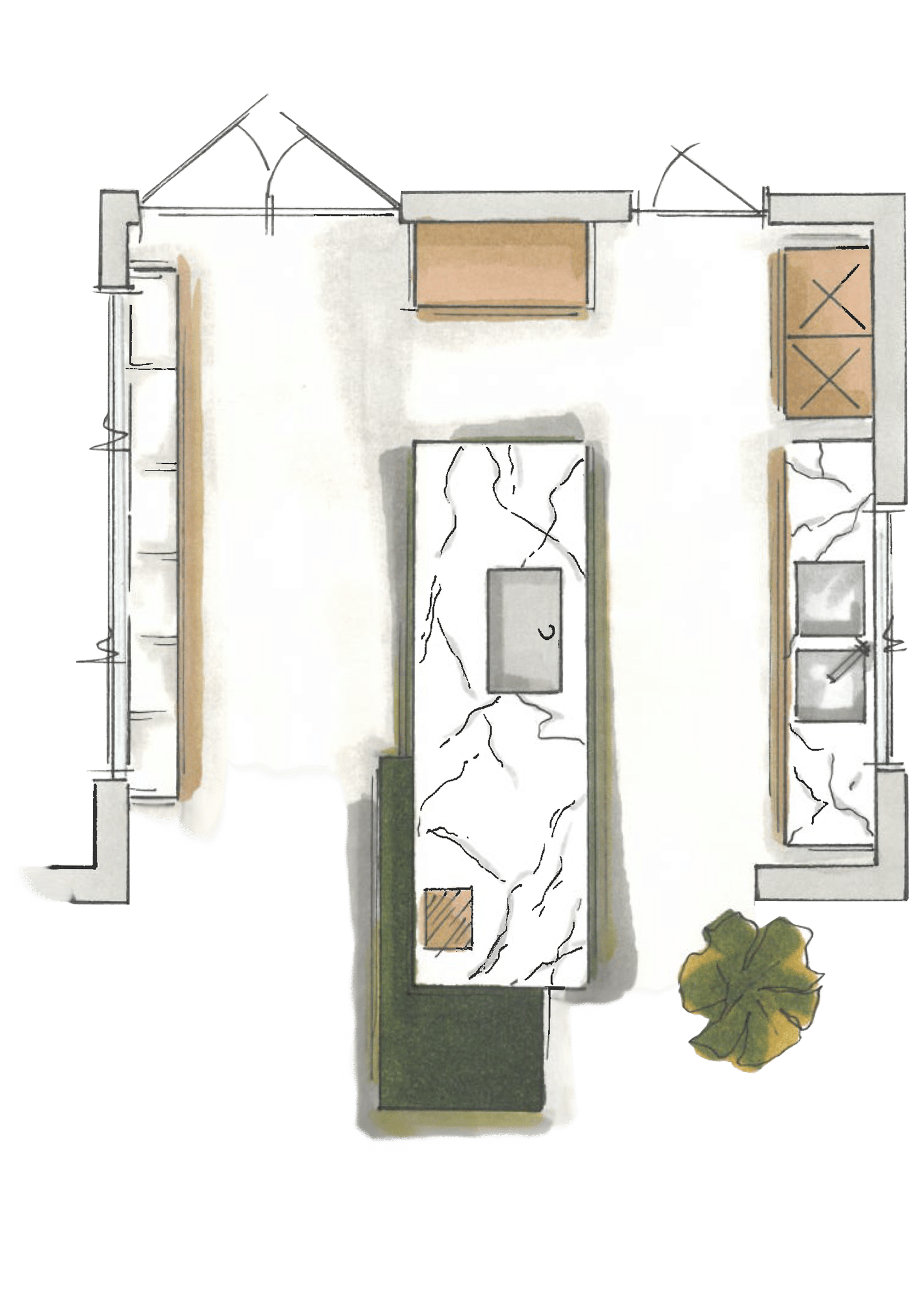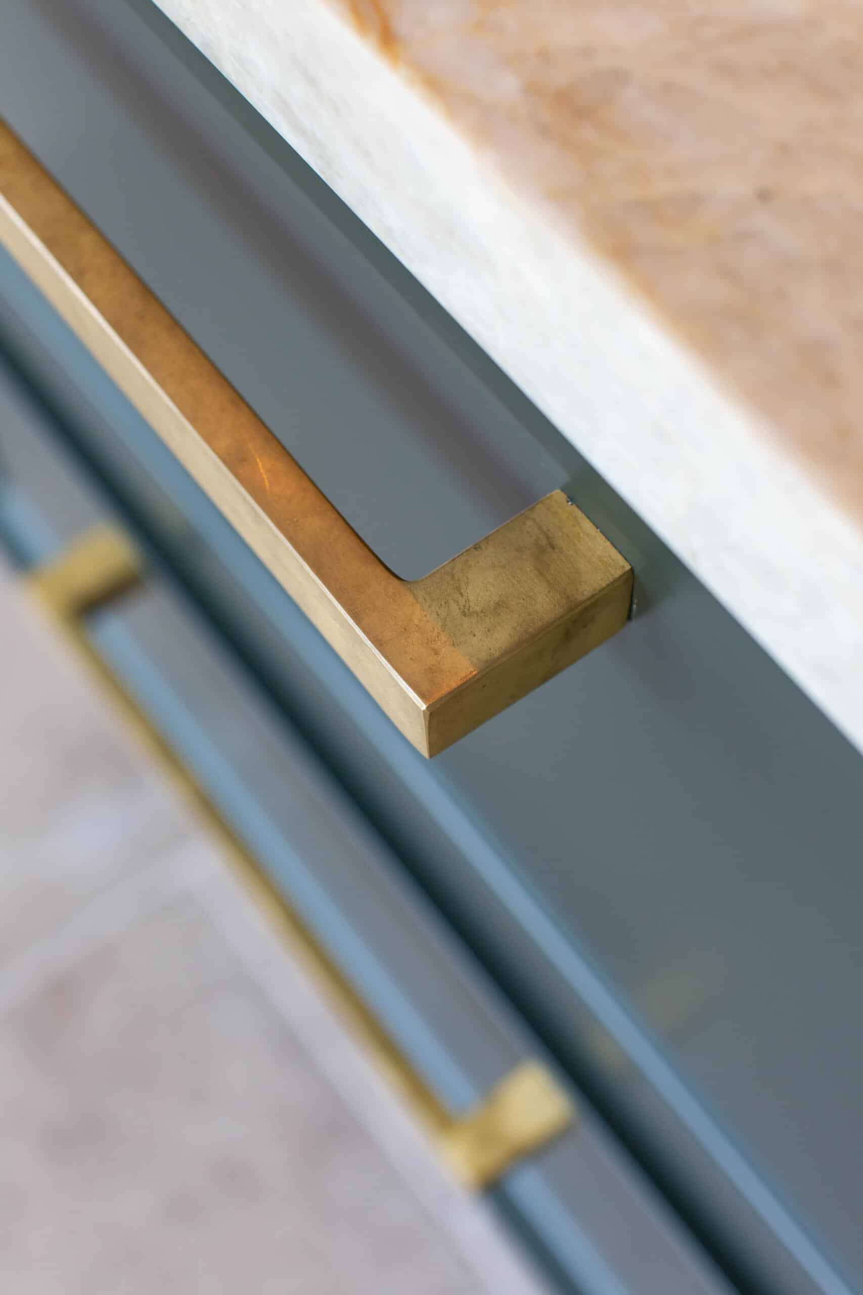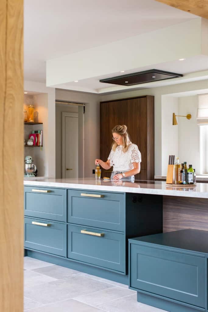 Richard en Paula hadden wel een beetje een beeld van de keuken, en aan de hand van hun moodboard is interieurdesigner Wilbrand aan de slag gegaan. Na een aantal gesprekken viel bij Paula alles op zijn plek. “Toen Wilbrand mij deze kleur liet zien was ik écht verkocht, helemaal in combinatie met de messing grepen en het werkblad.”