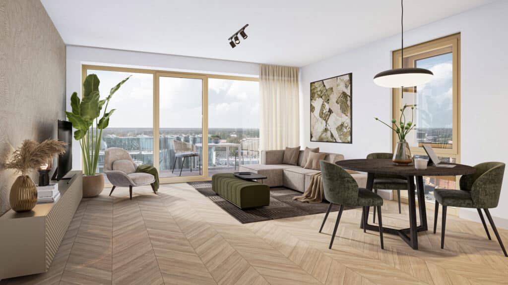 De appartementen hebben een woonoppervlak van 57 tot 75 m2. Ze beschikken allemaal over een eigen buitenruimte van minimaal 8 m2. Je mag daarnaast een hoog opleverniveau verwachten, denk aan minimaal energielabel A+, vloerverwarming, een glasvezelaansluiting en aparte nutsvoorzieningen.
